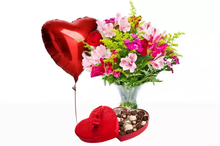 הצבעים הקלילים והמרגשים של הפרחים נותנים איזון נפלא לצבעי האדום הבוהק של אריזת השוקולד והבלון המיוחד. שלושת פרטי המוצר המשולבים בסידור יכניסו אור ושמחה גדולה לכל חדר ויעלו חיוך על פני האהובים המקבלים.